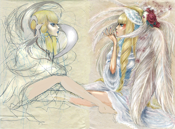 キエルもディアナもイメージカラーが白っぽいのがとても悩ましい。白い絵を描くのって難しい。
