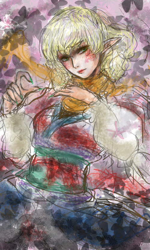 良く花を画面に入れたがるえろい私なのですがひたすら根気で描いてるので失神しそうになる。しかも何この色のバラ気色悪い。