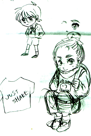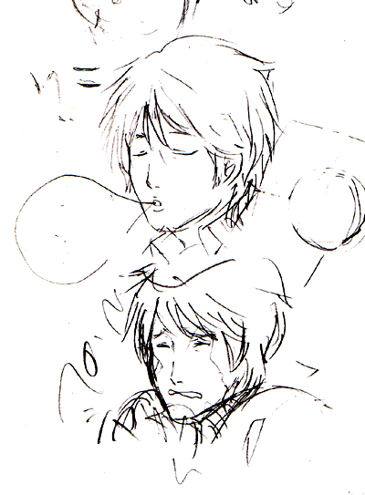 ・真ん中は多分オーちゃんでしょうか、残念ながら似ていません。模写から練習して行きましょう。彼は「受」だと言う事も意識して。